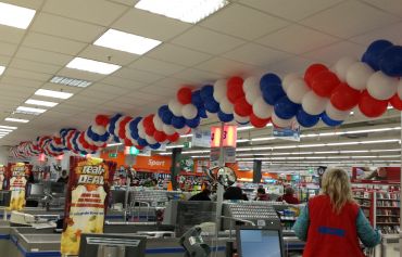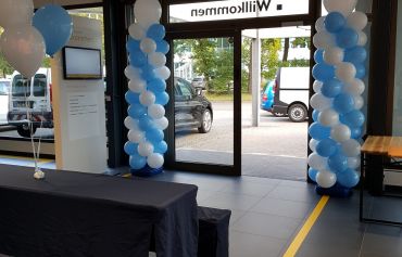 Ballongirlanden und Ballonsäulen sind immer ein Hingucker und erzeugen auch schon von weitem große Aufmerksamkeit. Mit Luft und farbigen Ballons läßt sich viel Aufmerksamkeit erzeugen.